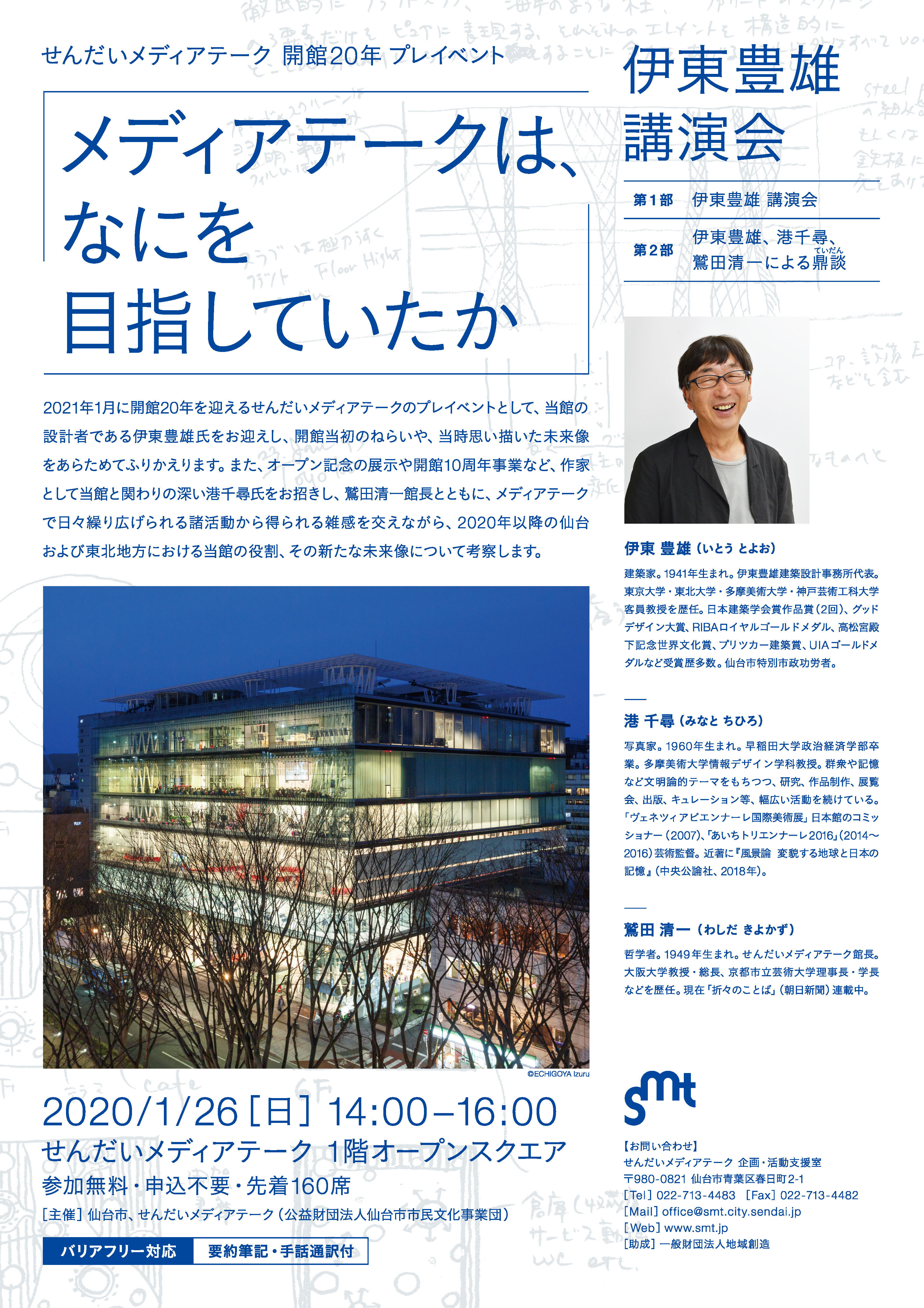 せんだいメディアテーク 開館20年 プレイベント 伊東豊雄 講演会「メディアテークは、なにを目指していたか」